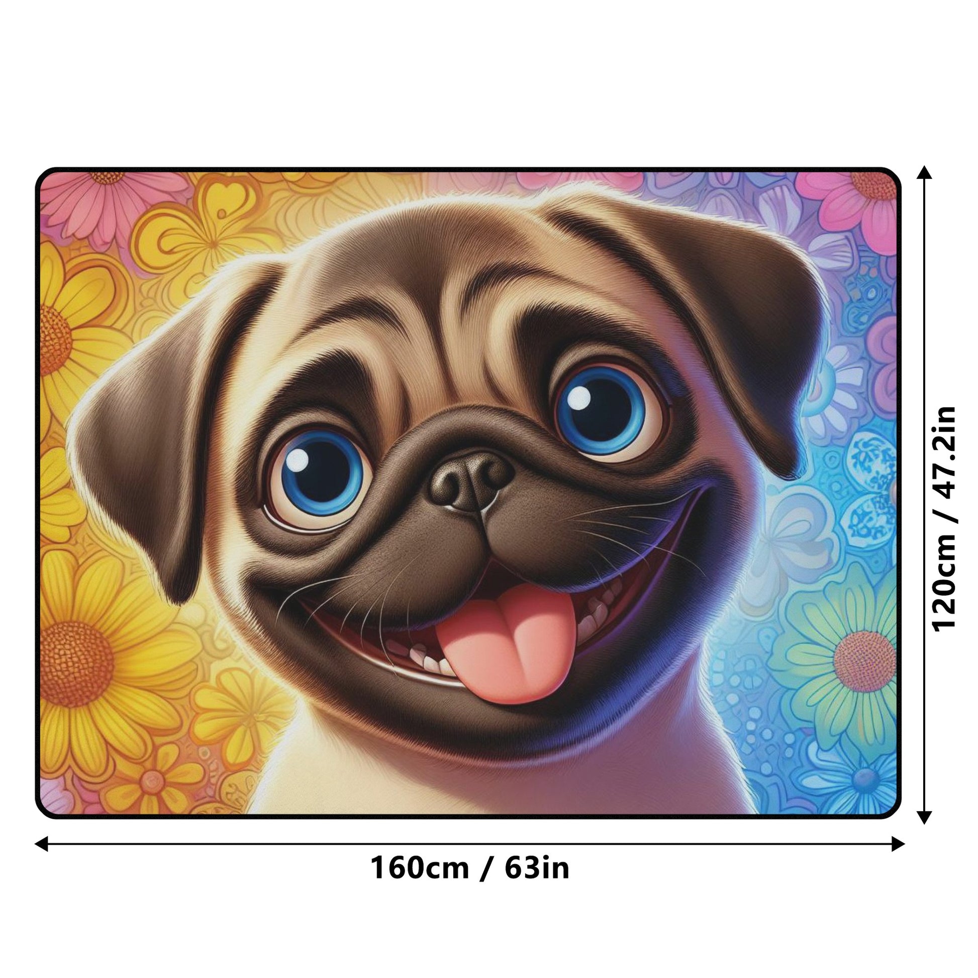 • Design: Each rug boasts a customized pug-themed print on the topside, adding a personalized touch to your space.