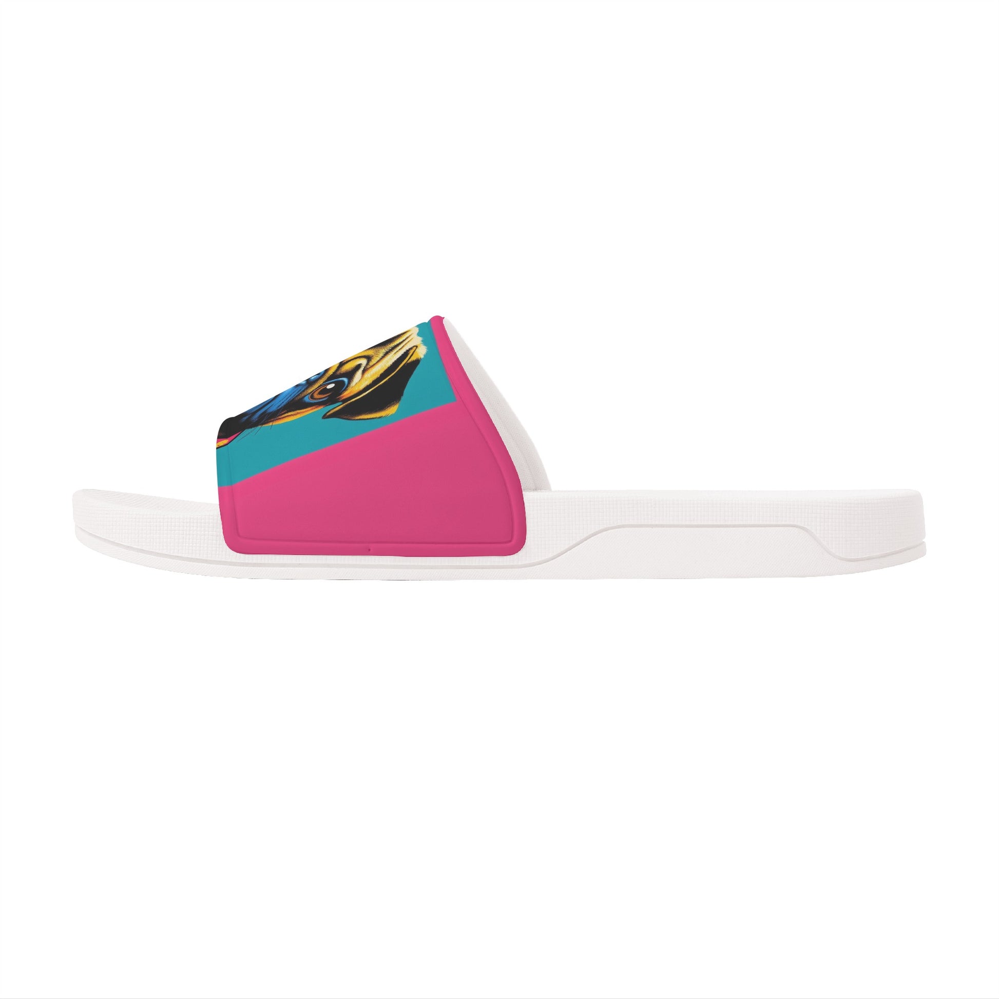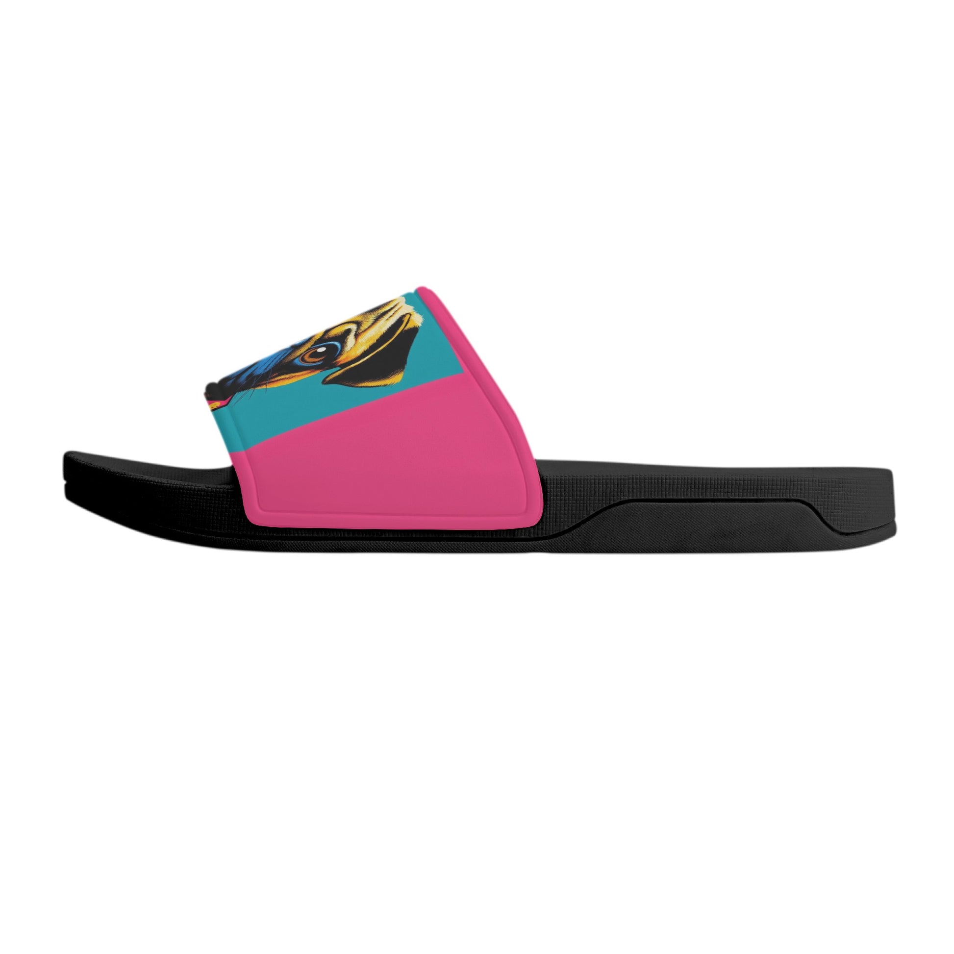 Unleash your love for pugs with our custom printed slide sandals, featuring an open toe and flat heel style for ultimate comfort. Here's what makes them special: