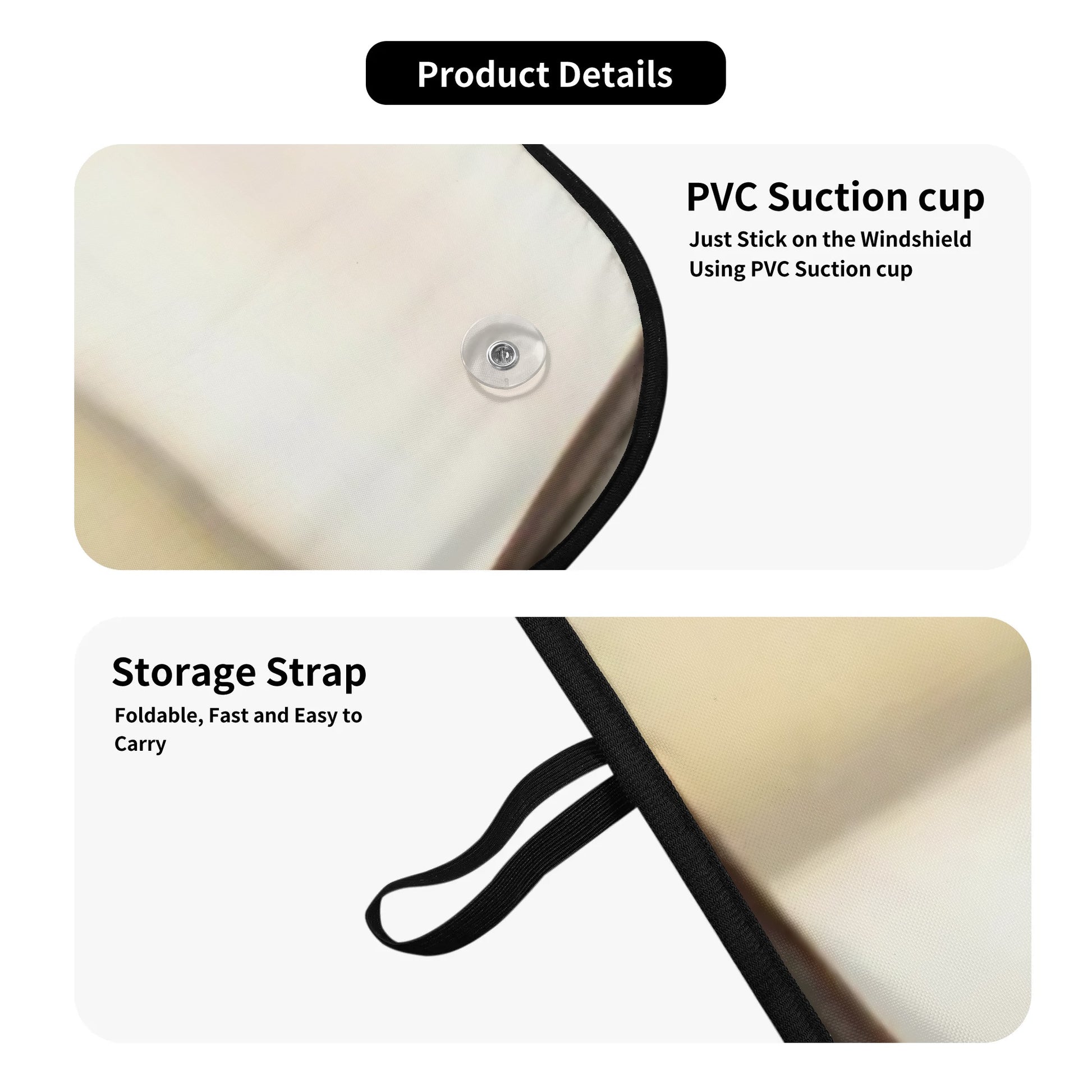 - Installation: Equipped with durable PVC suction cups, the sunshade attaches firmly to your windshield, making it simple to set up or remove as needed.
