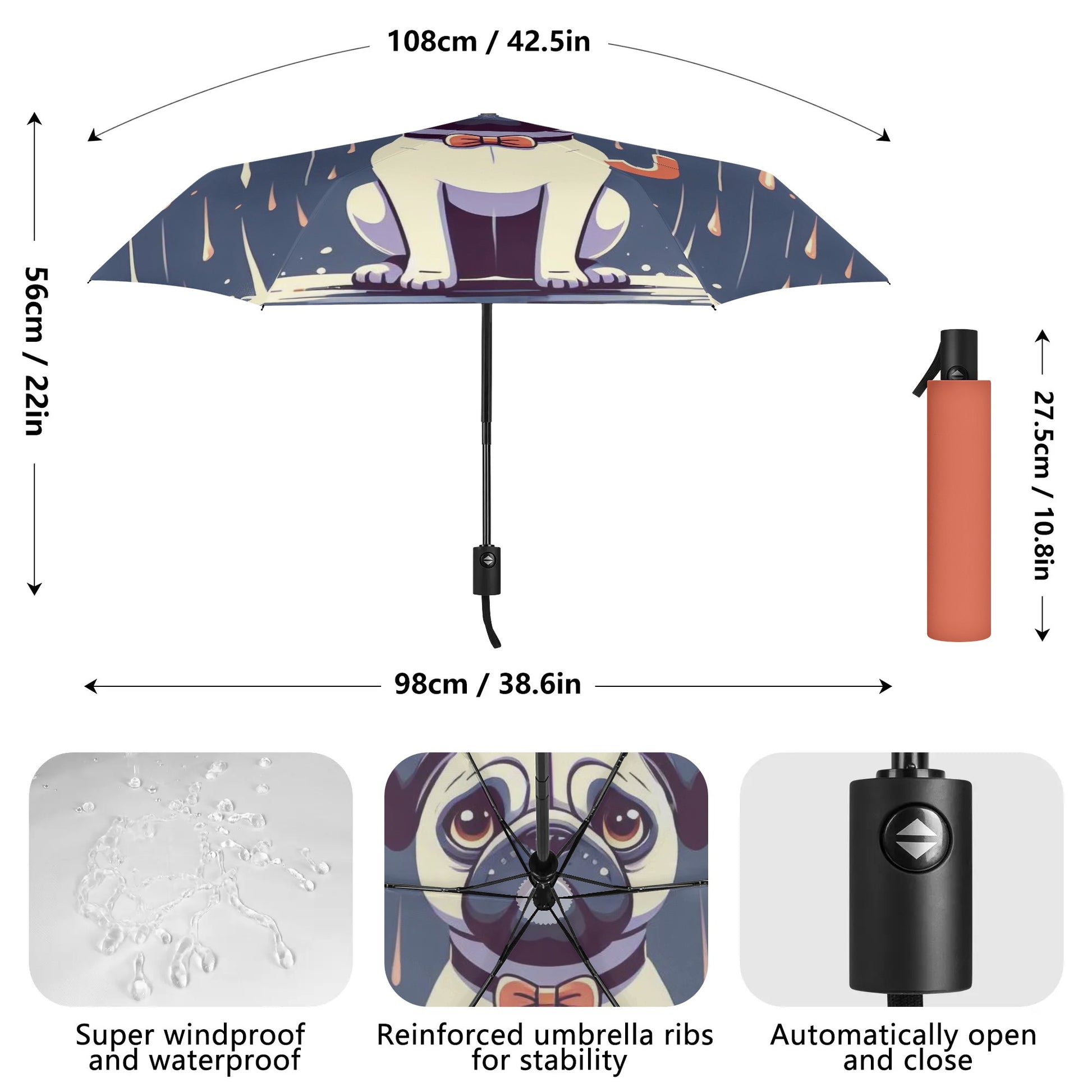• Stylish Companion: Not just an umbrella – a statement piece that stands out in any weather, perfect for pug enthusiasts who want to flaunt their passion.