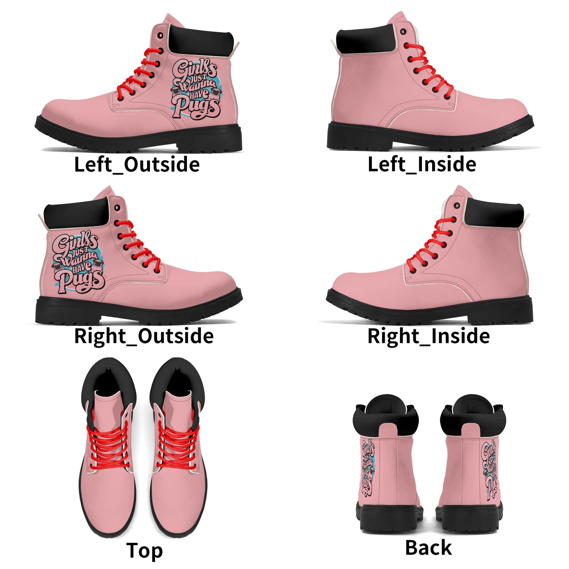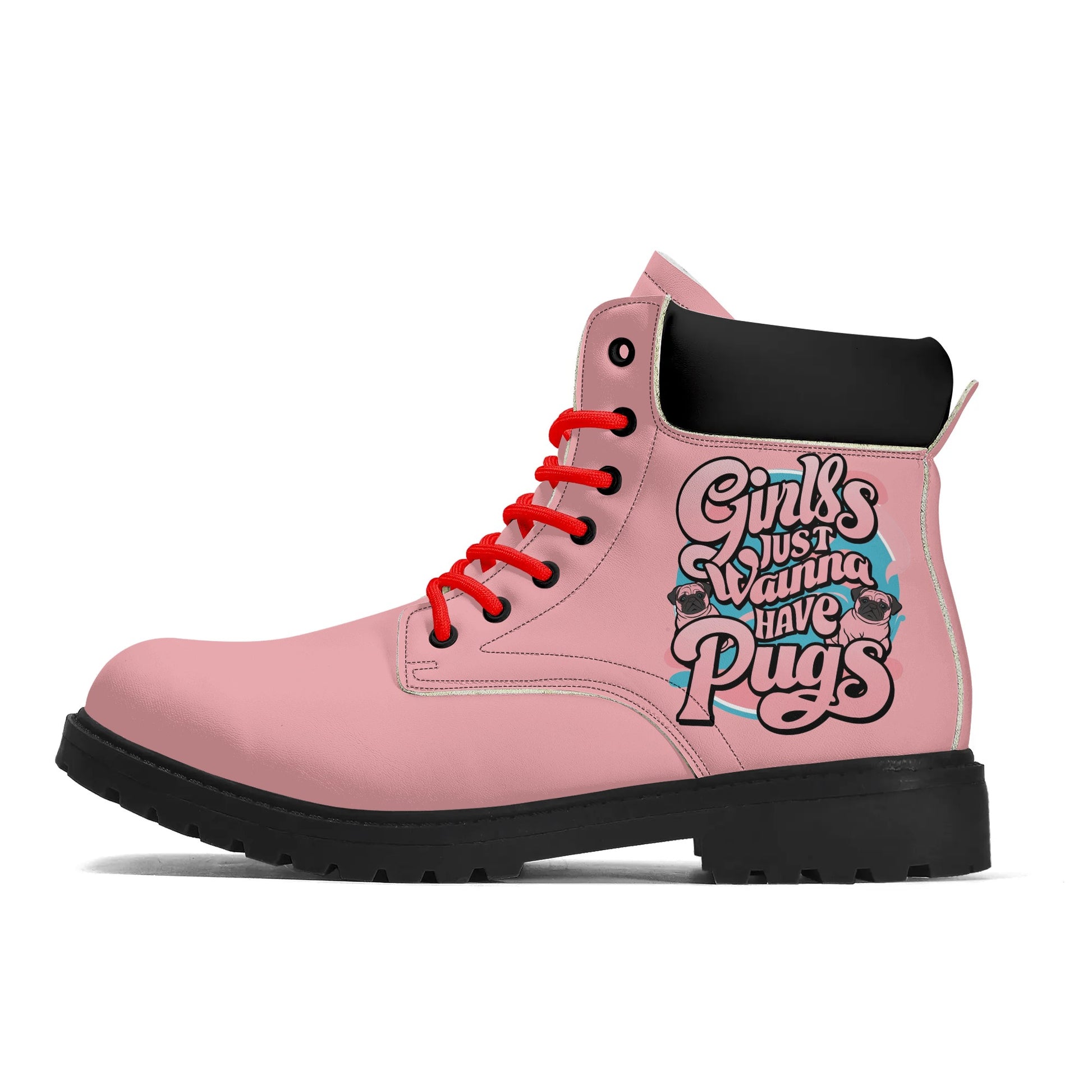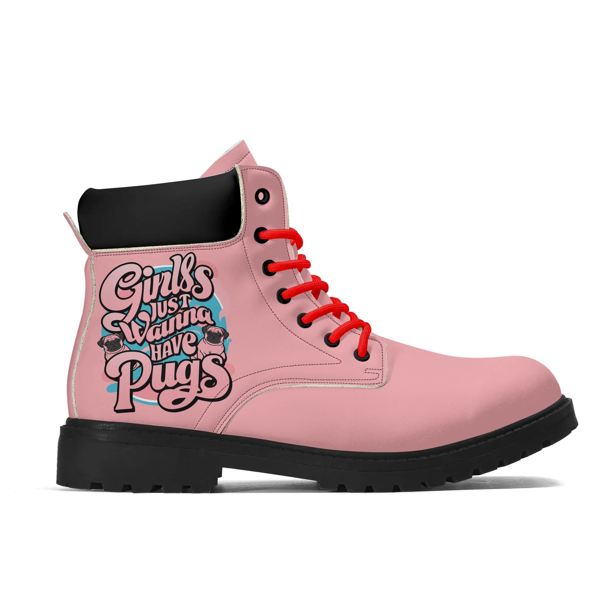 • Rugged Details: Custom-developed reinforced eyelets and polyester laces enhance the rugged aesthetic, making these boots a perfect match for the pug lover's adventurous spirit.
