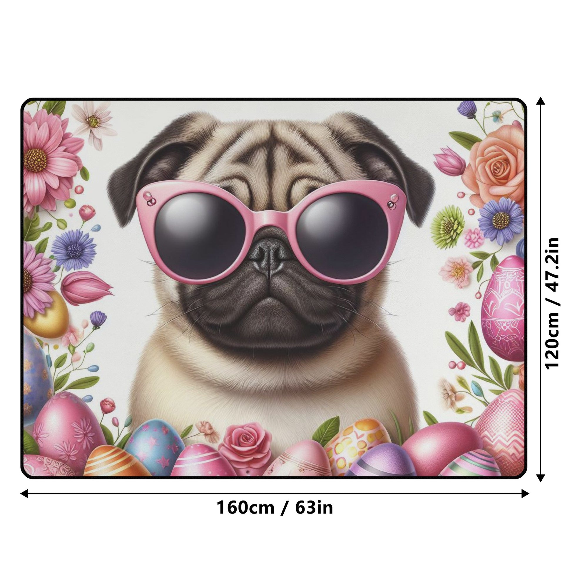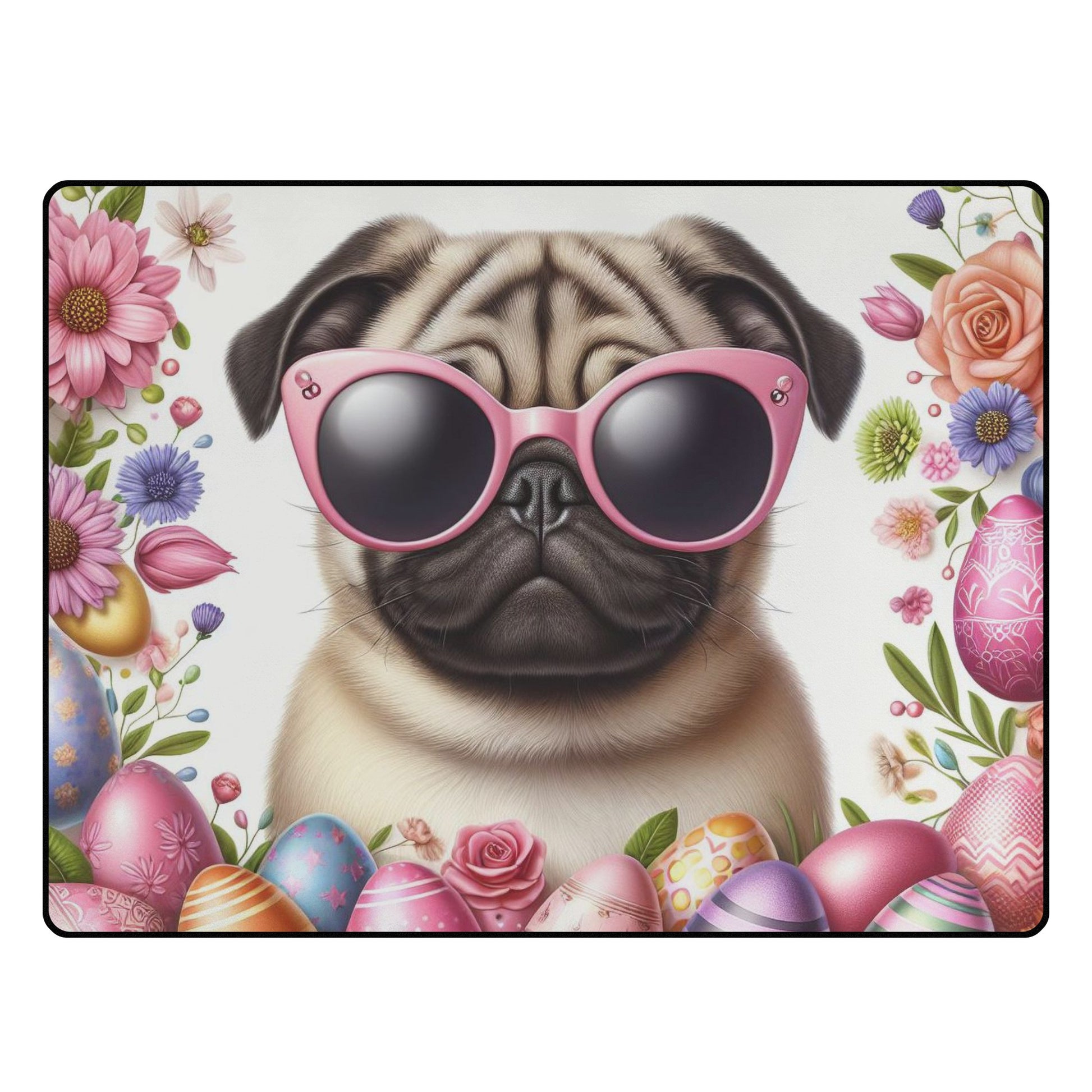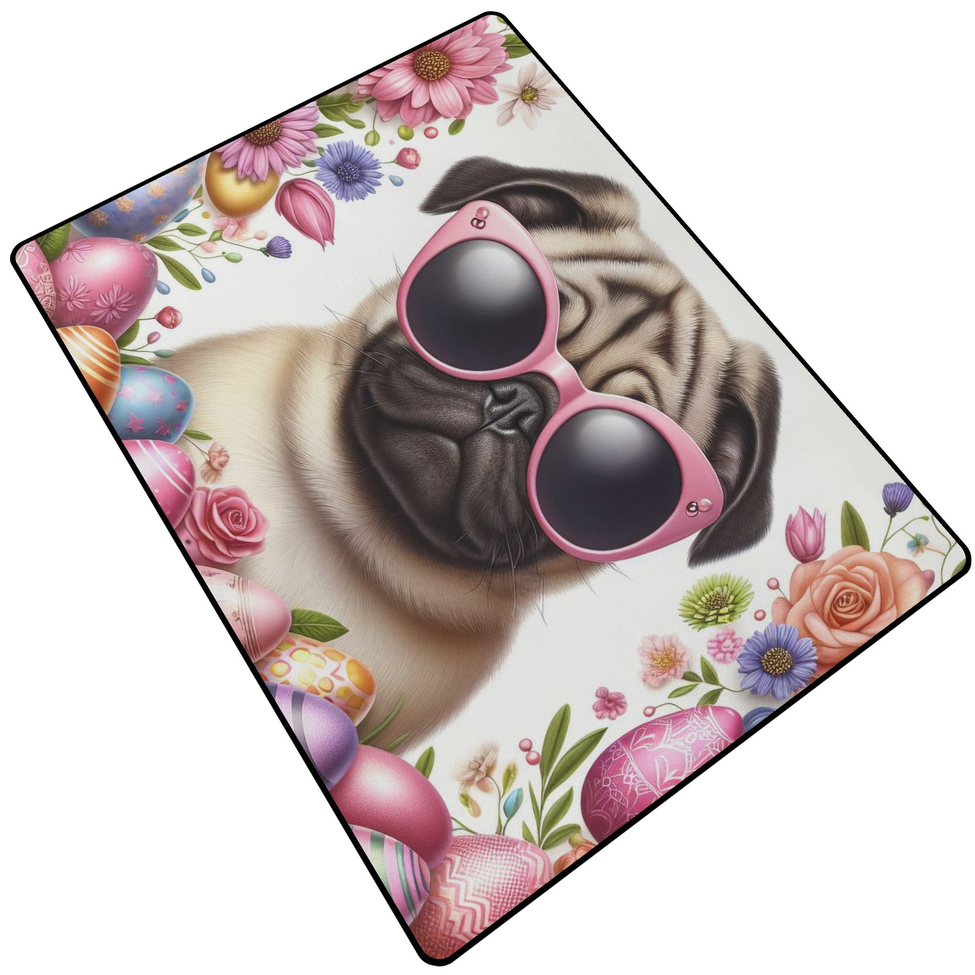 • Design: Each rug boasts a customized pug-themed print on the topside, adding a personalized touch to your space.