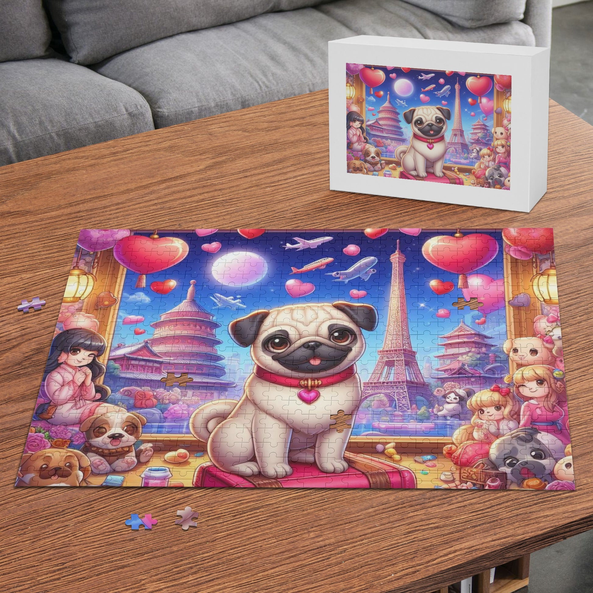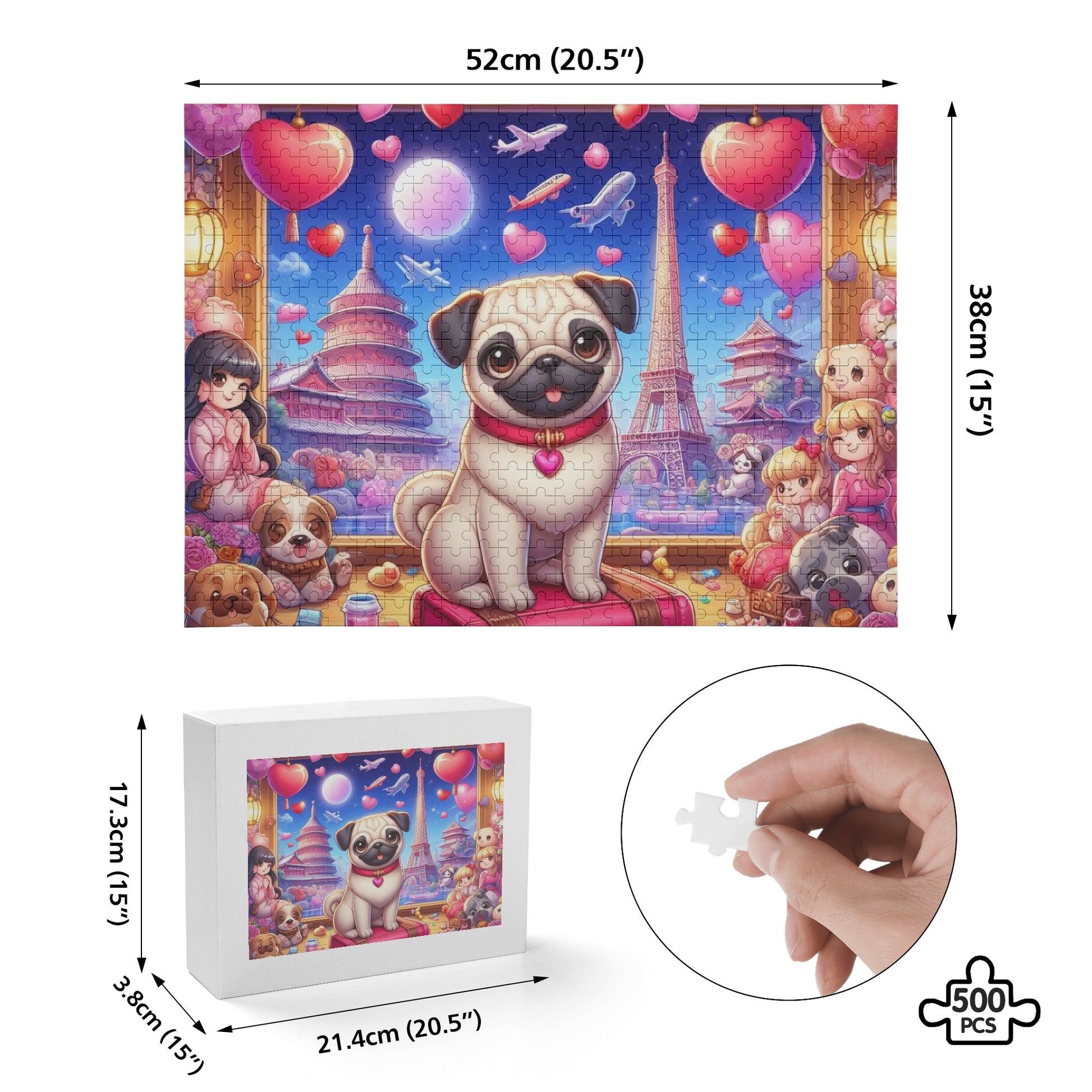 Introducing our Pug Lover's Delight: The 500-Piece Wooden Puzzle!