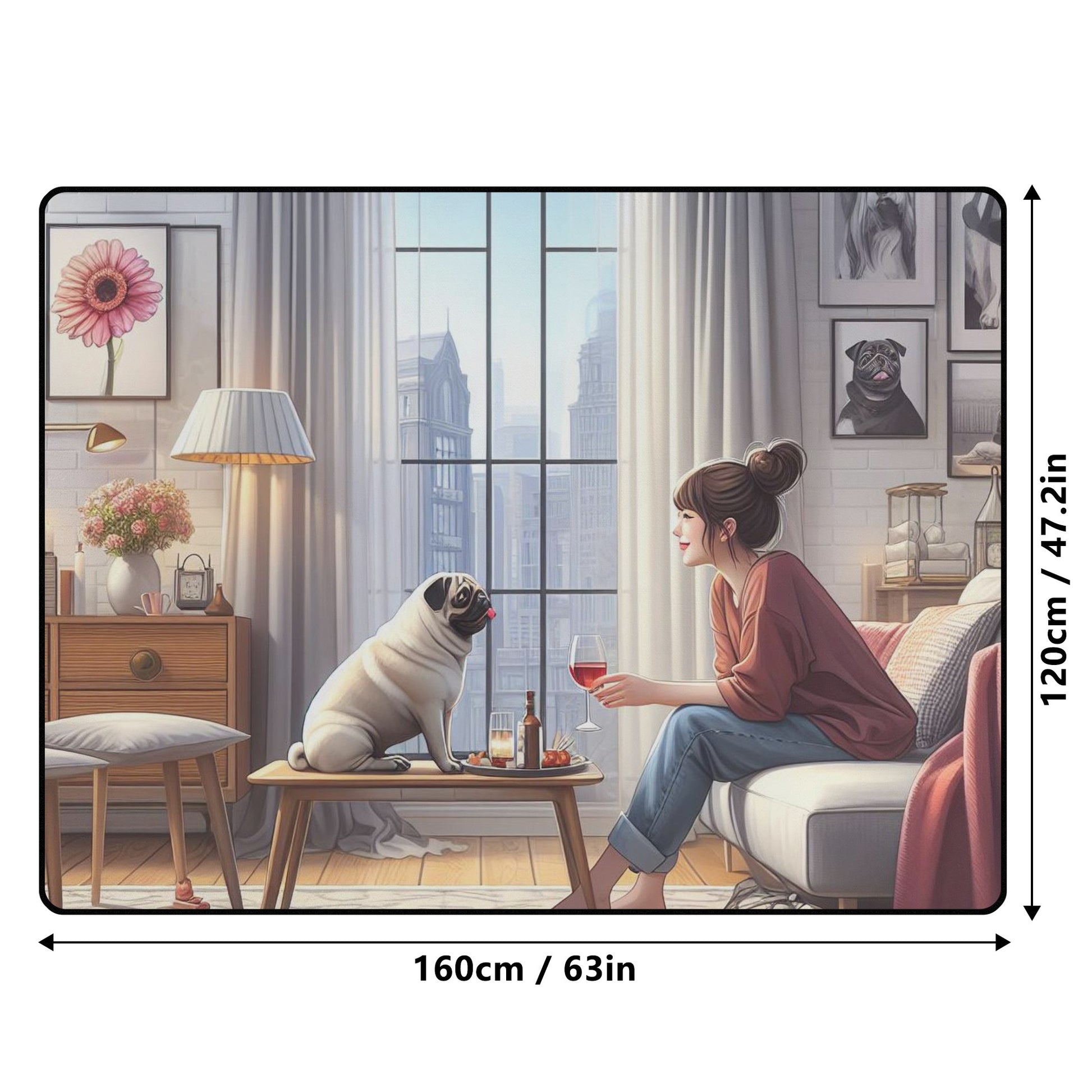 Indulge in the luxury of our Soft Polyester-Crystal Velvet Rugs, designed exclusively for pug dog enthusiasts. Our rugs feature: