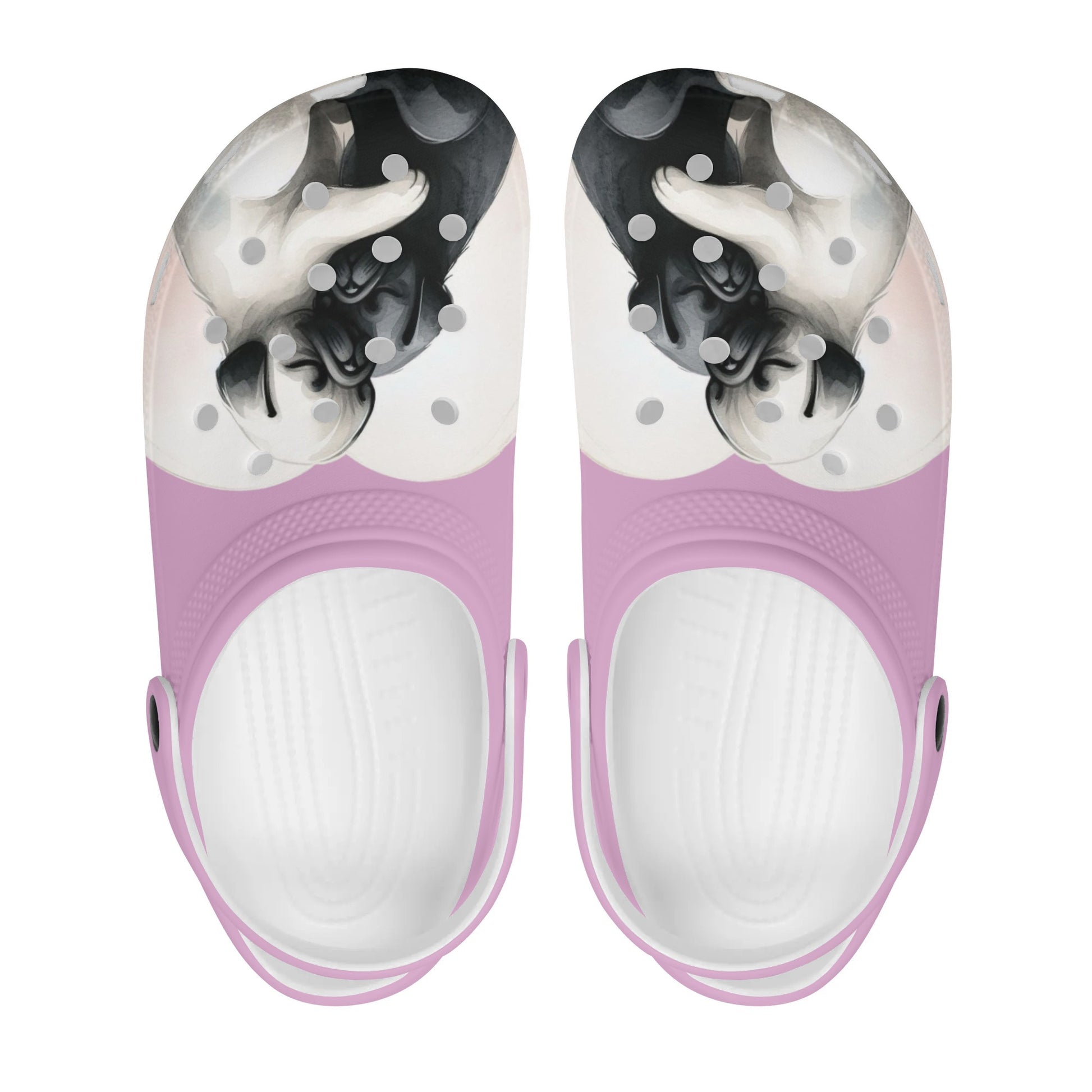 Custom Pug Print Clogs! Tailored for the pug aficionado, these clogs are a symphony of style and practicality. Here's what makes them special: